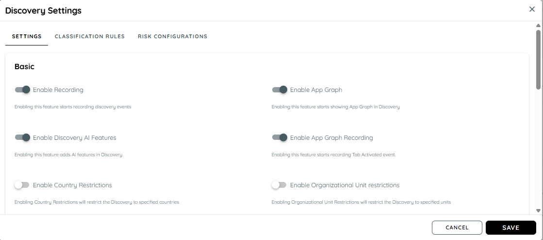 Discovery recording/event can be controlled with respect to location and organization unit by apply different type of filter on it, means user can customize setting in a way that recording may happen only in certain countries or certain organization unit.
