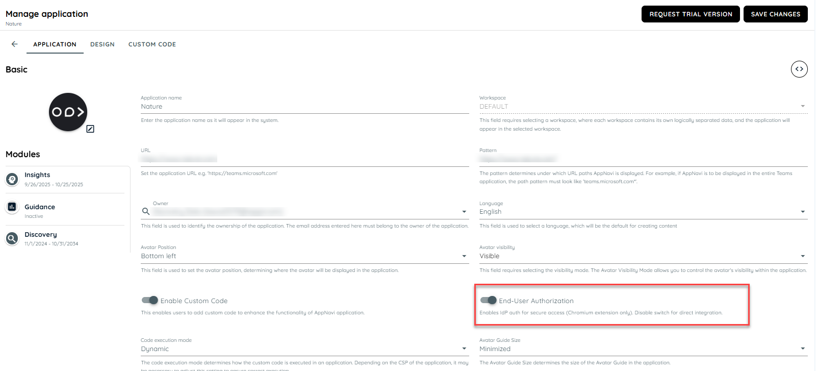 | What happens if End User Authentication is enabled in the portal but disabled inside the application settings? | The feature works correctly and also the AN-Loader can work | Extension continues fetching user data when the setting is disabled inside the application. |