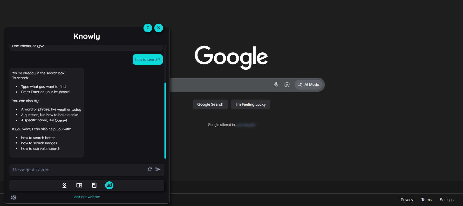 When the context aware feature is enabled and user asks something related to the application, it will catch context of the questions asked and will reply accordingly. For example if we ask on the Google application how to search? it will display all the details that it has cached from the tracking of the element where the user is currently working on. This feature intelligently helps the users guide step by step on which ever tab they are working on. This works by the system intelligently keep tracking of the user clicks and determines the context of the question of the user and then generate the reply's in the chat.