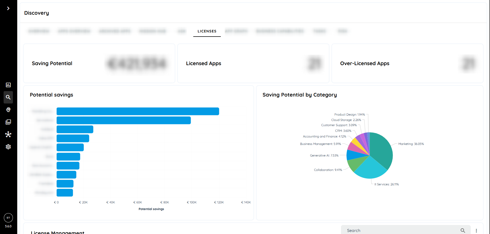 - Saving Potentials: The estimated financial amount that could be saved by reducing excess licenses.