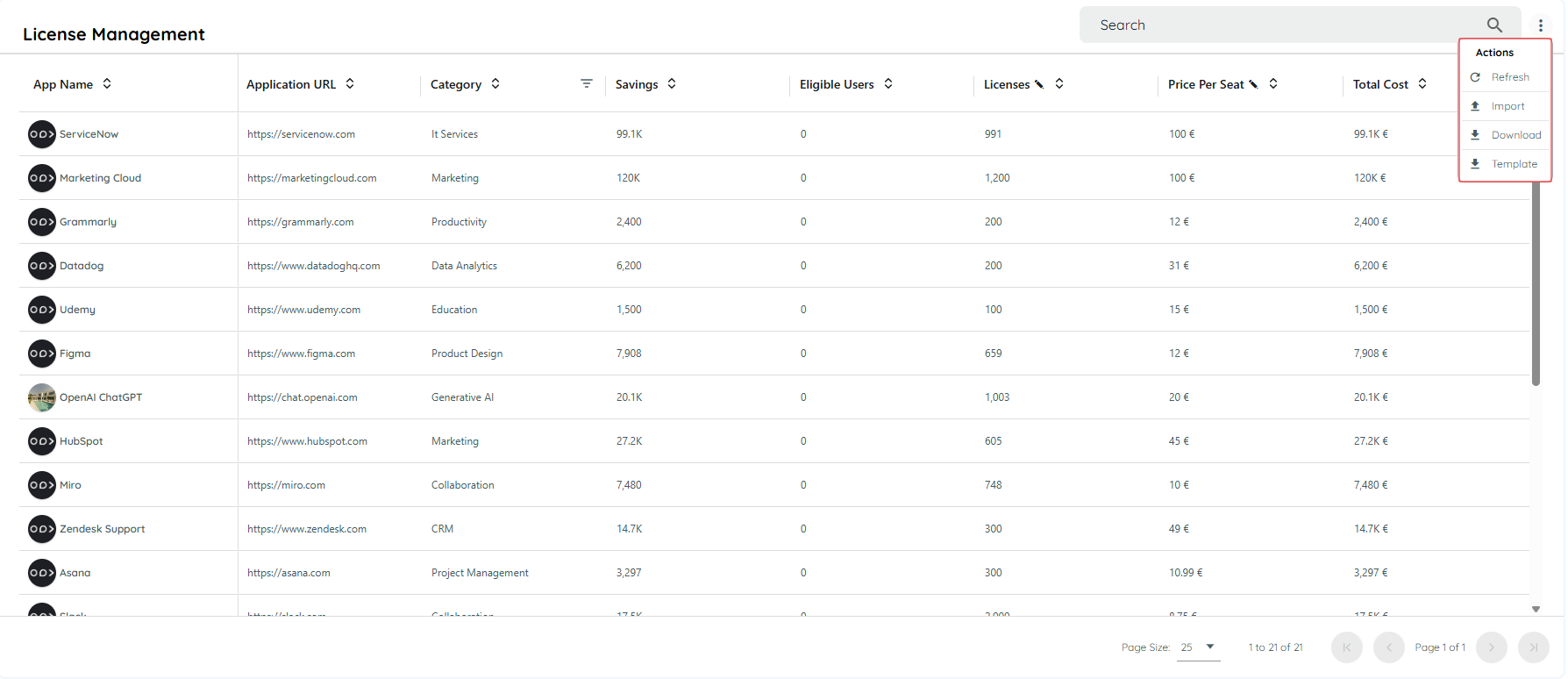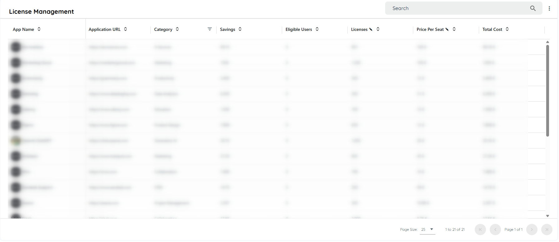 - Display insights such as Eligible Users, Over-Licensed Applications, and Potential Savings