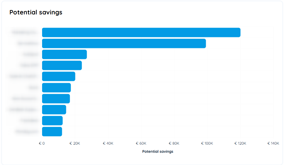 - Saving Potential by Category: Breakdown of saving opportunities grouped by application or organizational category.