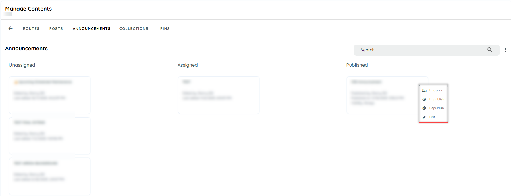 Users can also Unpublish , Unassigned, Republish or Edit.