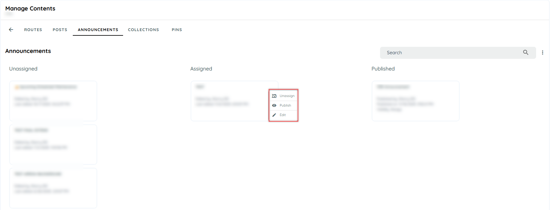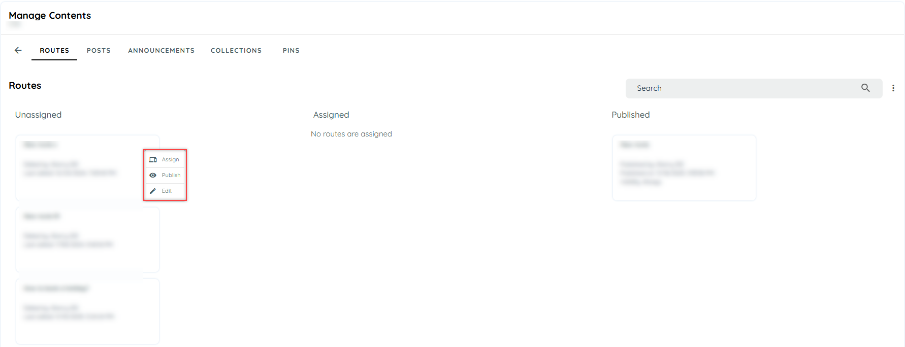 - Here Content will appear in three columns named as Un-Assigned, Assigned and Published.