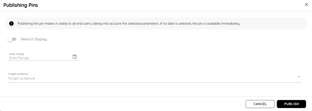 To display Pins publicly on any application, the user has to first assign that item to a specific application and then publish it. Published Pins will be available for both logged in users and guest users.