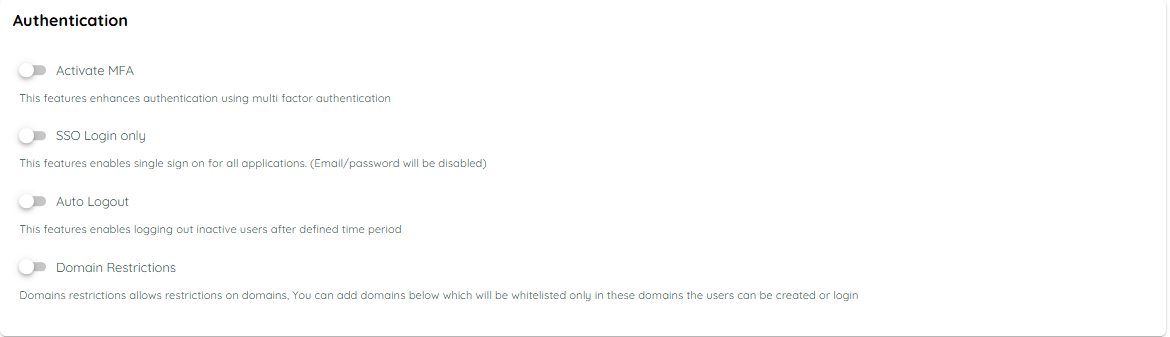 - Allows restricting login and user creation to specific domains only.