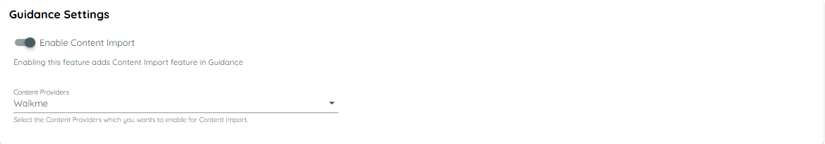 - Select providers (e.g., WalkMe) from which content can be imported into the system.