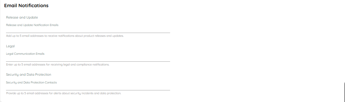 - Enter up to 5 email addresses to receive legal and compliance notifications.