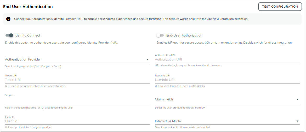 - Enables or disables IdP-based authentication for secure access.