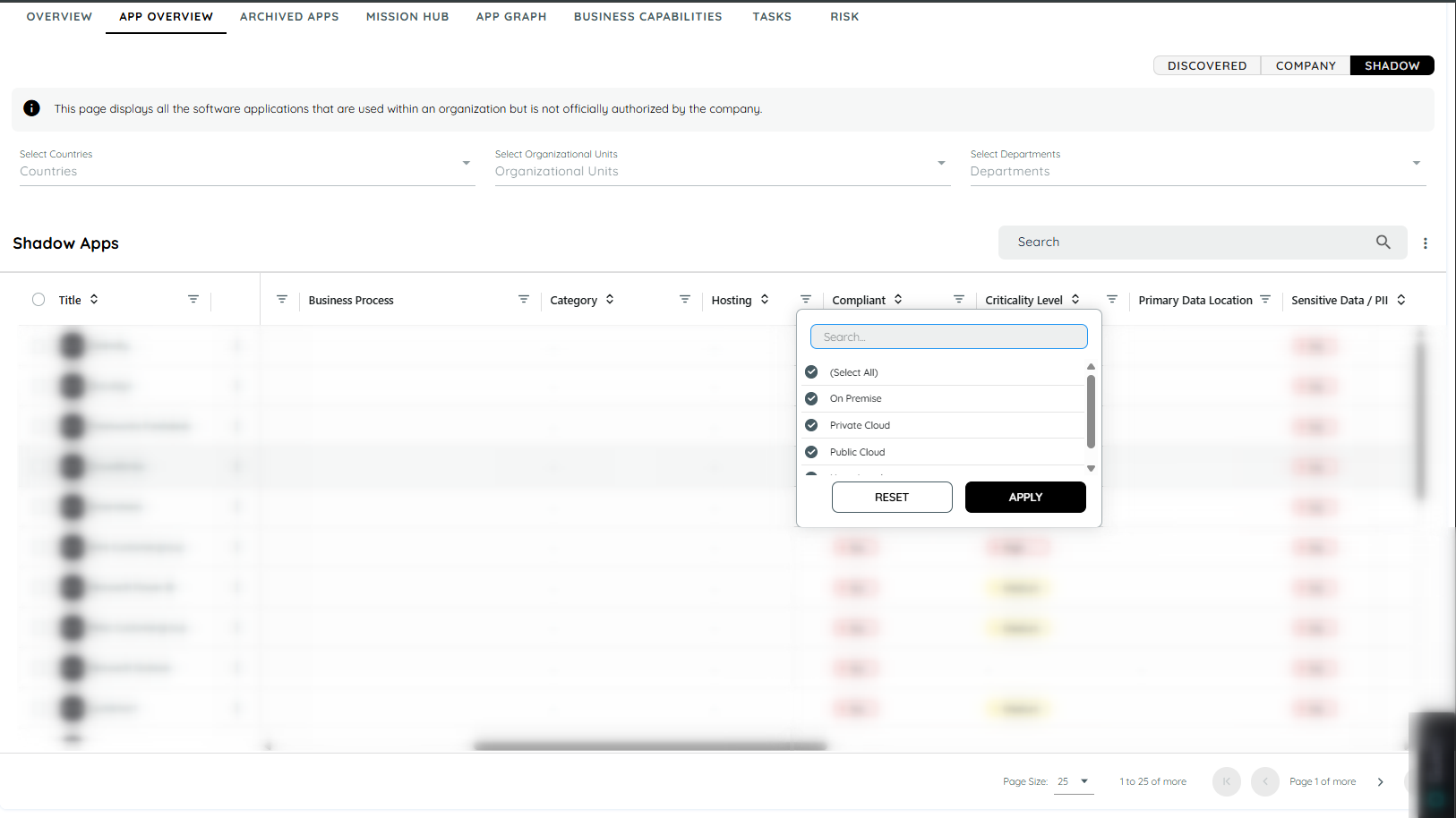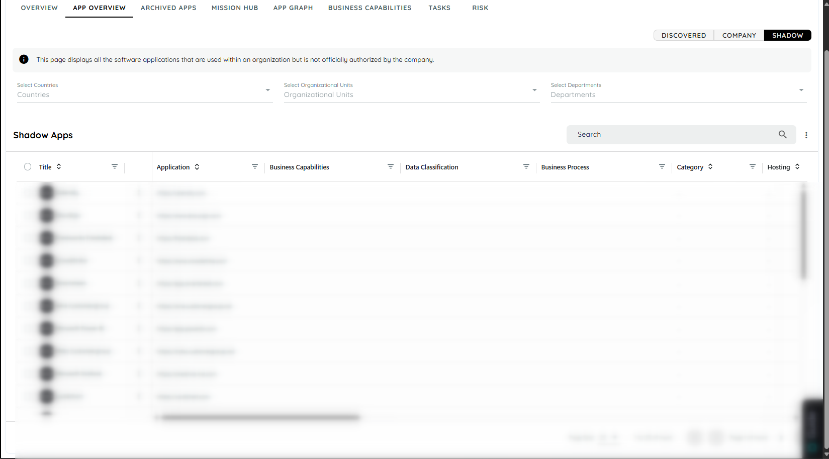 A shadow app is an application that has been discovered by AppNavi but is not officially authorized by the company. A shadow app can also violate a company's policies and therefore be "not compliant".